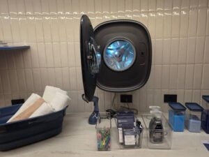 Um dos grandes destaques da exposição é a Nina, uma lavadora e secadora com design ultracompacto que redefine a otimização de espaço. Ideal para apartamentos menores ou áreas de serviço limitadas, ela pode ser instalada diretamente na parede. A Nina possui capacidade para lavar até 3 kg de roupa e secar 1,5 kg, apresentando-se como uma solução tecnológica e estética para a vida urbana contemporânea.