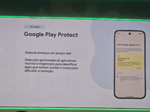 Ele apresentou novidades no Google Play Protect, que agora detecta ameaças em tempo real. O sistema foi aprimorado para identificar aplicativos nocivos e enganosos, incluindo aqueles que tentam ocultar o próprio ícone para dificultar a remoção.