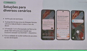 Ele também relembrou as funções de proteção contra roubo (como bloqueio remoto, detecção de roubo e bloqueio de dispositivo offline) e as novas camadas de segurança do Android 16, como verificação de identidade, perguntas de segurança e proteção contra restauração de fábrica.