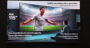 Telas Gigantes para a Copa: De olho no mundial de futebol, a linha QNED chega a impressionantes 115 polegadas, utilizando o processador Alpha 8 Gen 3 para garantir nitidez e controle de brilho em escala colossal.