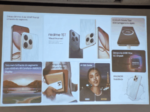 A realme anunciou, o lançamento do realme 15T no Brasil. O smartphone chega ao segmento intermediário com a proposta de entregar um acabamento mais sofisticado e recursos de inteligência artificial para edição de fotos, custando R$ 2.699.