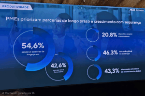 Ontem estive em um evento da ASUS Business quando eles apresentaram uma pesquisa muito interessante de como as pequenas e médias empresas (PMES) veem a IA e a necessidade de adotarem equipamentos com IA embarcada.