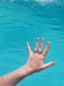 No dia a dia, o anel se provou um verdadeiro sobrevivente. Sou do tipo que esquece de tirar acessórios para as tarefas básicas, então ele encarou sessões de lavagem de louça, banhos e mergulhos na piscina sem reclamar. Usei hidratantes e bloqueadores solares sem dó, e o acabamento em aço inoxidável continuou impecável. O único momento em que precisei dar um tempo para ele foi nos dias de calor extremo. Como meus dedos incham quando a temperatura sobe, o formato rígido incomodou um pouco, o que me obrigou a tirá-lo por algumas horas. É um detalhe importante para quem, como eu, sofre com a retenção de líquidos no verão.