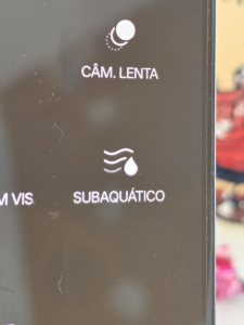 Essa robustez não é só sensação, pois a certificação IP69 é a estrela aqui. Diferentemente da maioria dos aparelhos intermediários, ele aguenta jatos de água potentes e imersão, o que me deu uma tranquilidade rara de usar o celular sem capa no dia a dia. Falando em água, o aparelho traz um modo subaquático dedicado, e aqui vai uma dica de ouro: ao ativar essa função a tela perde o toque. O controle passa a ser 100% pelos botões físicos, o de aumentar o volume tira fotos e o de abaixar o volume grava vídeos.